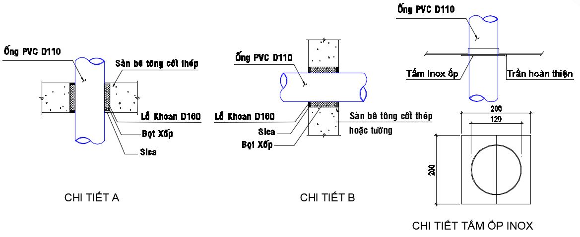 - Lắp đặt đường ống xuyên tường và xuyên sàn.