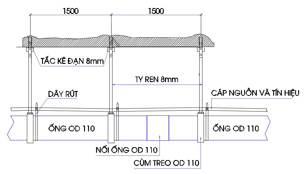 + Giai đoạn lắp đặt đường ống và dây cáp điện.