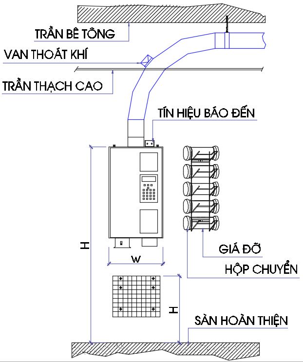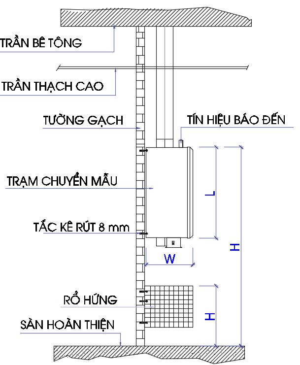 - Trạm được lắp đặt trên tường với cao độ 1600mm -1700mm.