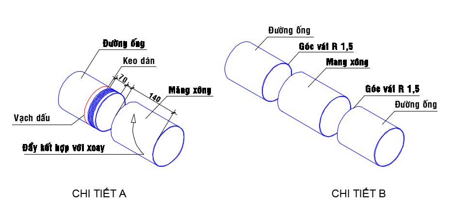 - Lắp đặt đường ống phải thẳng, không xiên vẹo, các vị trí co phải vuông góc với đường ống.