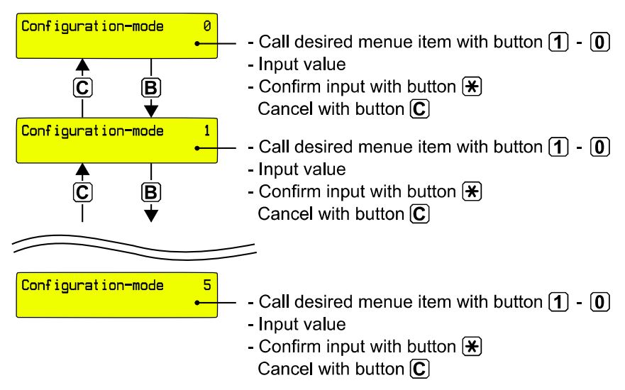- Call desired menue item with button 1 - 0: Gọi danh mục bằng nút 1 và 0