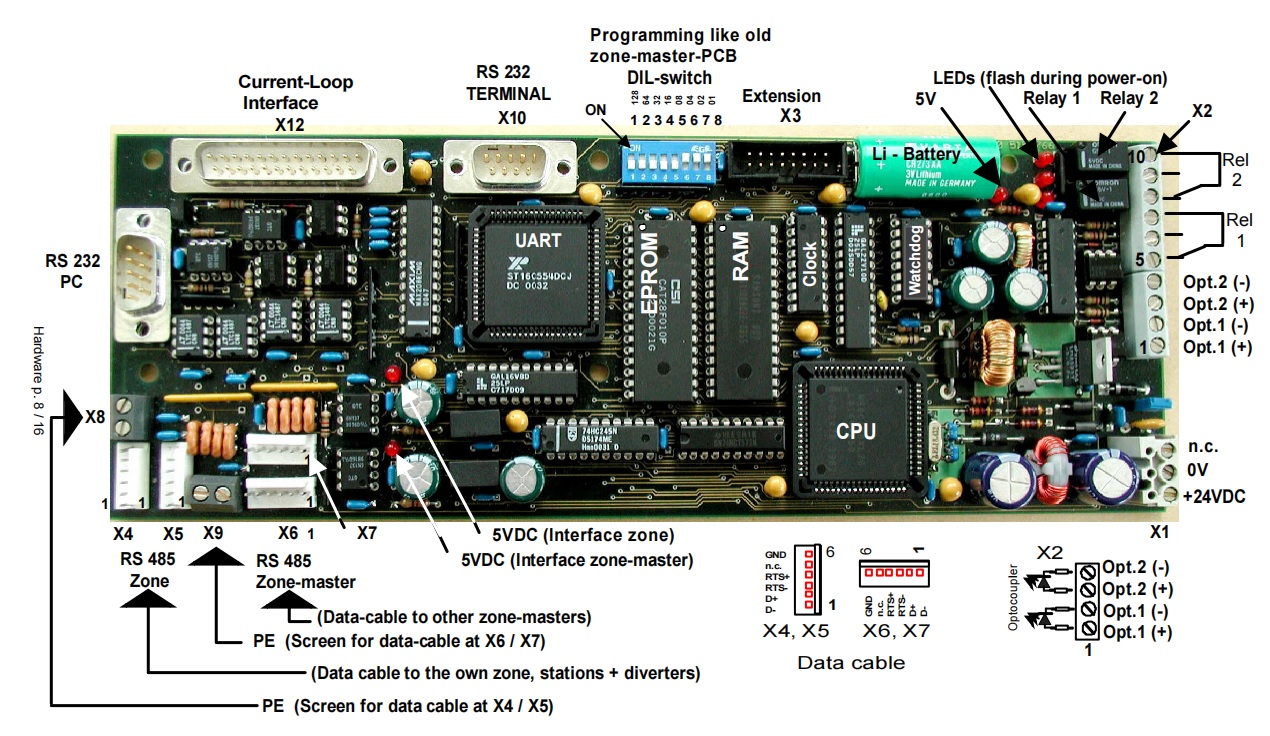 | Chân X4, X5 | Chân kết nối tín hiệu từ các trạm, diverter về zone |